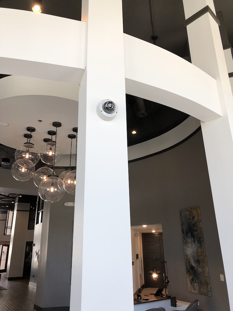 Surveillance cameras positioned throughout the complex for monitoring and deterrence